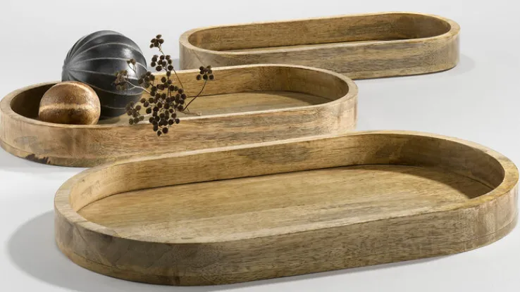 Das ovale casaNOVA Dekotablett ist ausgesprochen dekorativ. Es ist aus Holz, speziell Mangoholz, gefertigt und zeigt eine schöne Maserung. Es kann zur Umsetzung verschiedener Dekoideen verwendet werden. Das Tablett hat eine Größe von 21 x 46 cm.