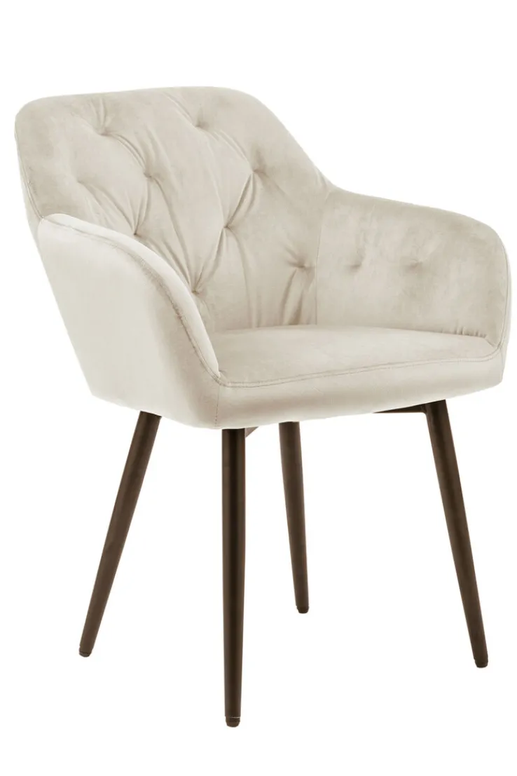 Der CASAVANTI Armlehnstuhl mit den Maßen 61 x 85 x 45 cm kombiniert das robuste Vierfußgestell aus schwarz pulverbeschichtetem Metall mit einem angenehm gepolsterten Sitz. Dieser ist mit kuschelweichem Samt bezogen und begeistert mit seiner Haptik. Das moderne Aussehen des Esszimmerstuhls unterstreicht die Kissensteppung an der Rückenlehne, während die festen Armteile den Sitzkomfort perfektionieren. Ob im offenen Wohn-Essbereich oder im Esszimmer, dieser stylische Armlehnstuhl sorgt im Handumdrehen für Komfort.