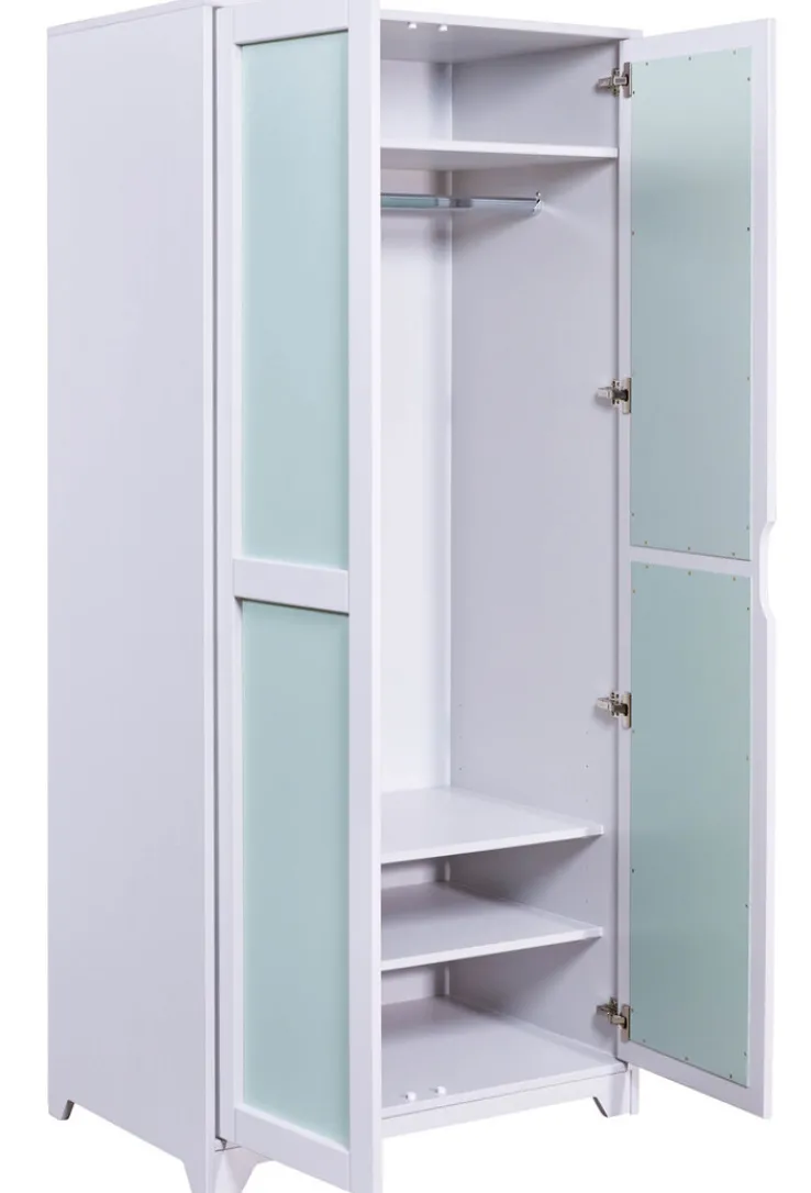 Der Drehtürenschrank KILIAN ist in einer Kombination aus Weiß mit Pastellgrün designt und hat die Maße 92 x 205 cm. Vorgesehen für ein modernes Schlafzimmer, bietet der Drehtürenschrank der klassischen Garderobe umfangreichen Platz und bei der Gestaltung des Schrankinnenraums ein hohes Maß an Individualität.