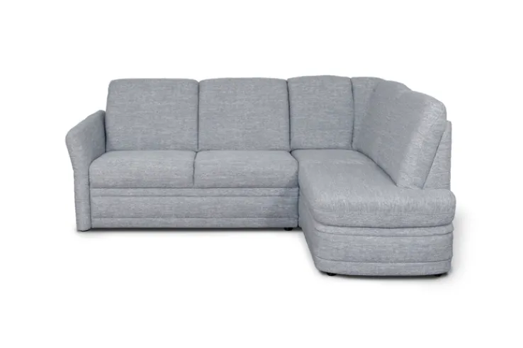Das Ecksofa besteht aus einem 2-Sitzer Sofa mit Armteil auf der linken Seite sowie einer Recamiere. Beide Elemente verdanken ihren hohen Sitzkomfort einer bequemen Federkernpolsterung. Darüber hinaus ist jedes Element mit einer komfortablen Kopfstütze ausgestattet. Neben dem hohen Komfort überzeugt das Sofa mit einem ansprechenden Design. Bezogen mit elegantem Textilstoff wird das Ecksofa sehr modern, ist dank seiner klassischen Form jedoch für moderne und klassische Wohnzimmer gleichermaßen geeignet. Die Rückseite ist mit Nessel bezogen, weshalb das Ecksofa ideal für die Platzierung an Wänden geeignet ist.