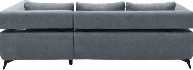 Das Sofa ist in einem ansprechenden Graublau gehalten, das sich harmonisch in verschiedene Einrichtungsstile einfügt. Der Bezug aus Textil verleiht dem Sofa eine angenehme Haptik und Langlebigkeit. Die Polsterung aus Polyschaum bietet optimalen Sitzkomfort. Die schwarzen Metallfüße in matter Optik verleihen dem Sofa einen modernen Touch. Ein integrierter Bettkasten bietet zusätzlichen Stauraum, während die drei mitgelieferten Rückenpolster für zusätzlichen Komfort sorgen.