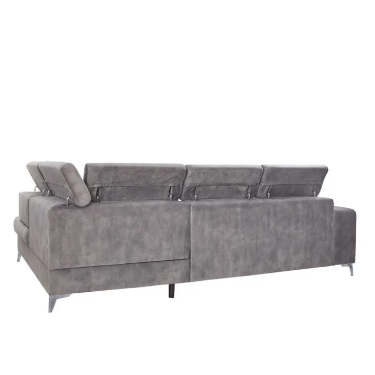 Das graue Ecksofa PRAG besteht aus einer Ottomane rechts und einem 2-Sitzer mit Armteil links. Fünf verstellbare Kopfteile, eine elektrische Sitztiefenverstellung und ein Bettkasten machen die gemütliche Polsterecke zur modernen Wohlfühloase im Wohnzimmer.