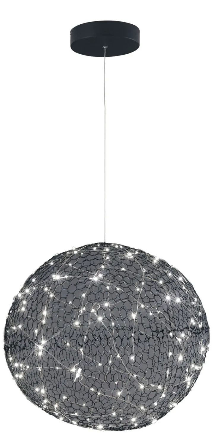 Die stylishe LED Pendelleuchte SUMTER von FABAS LUCE in zeitloser Drahtoptik präsentiert sich luftig-leicht. Das offene Design des Drahtgeflechts aus Metall sorgt dafür, dass die fest verbauten LEDs wie kleine Sterne wirken, die über einem Tisch im Wohnbereich oder in der Küche schweben. Mit einer Lichtbarbe von 3000 Kelvin taucht die wunderschöne Hängelampe ihre Umgebung in warmweißes Licht. Die Pendellampe lässt sich als Einzelstück oder in kreativen Kombinationen mit weiteren Leuchten der gleichen Bauart hängen, um individuelle Lichtobjekte zu kreieren.