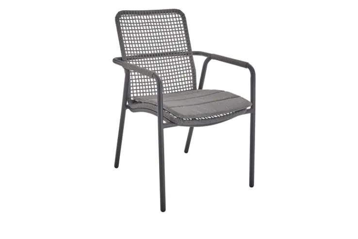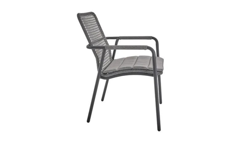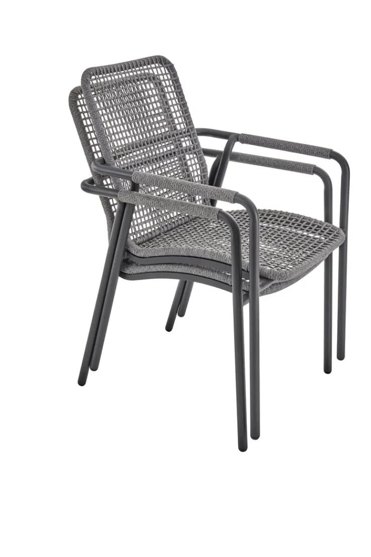 Der zweiteilige elegant-stylische REPTON ROPE Garten-Stapelstuhl von Garden FLAIR kommt in einem modernen und dennoch zeitlosen anthrazitfarbenen Metall-Gestell und einer hellgrauen Textilauflage. Das leichtgewichtige sowie stabile Modell überzeugt durch einen hohen Qualitätsstandard, komfortablen Armlehnen-Kordelung sowie ein luxuriös wirkendes Seilgeflecht.