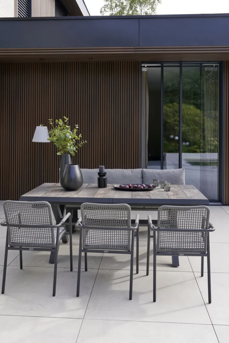 In puncto Hochwertigkeit, Design und Funktionalität ist die Marke Garden FLAIR unter anspruchsvollen Garten- und Balkonbesitzern ein bekannter Name. Mit REPTON ROPE Garten-Stapelstuhl steht ein neues Modell zur Verfügung, das aus robustem, rostunanfälligem sowie pulverbeschichtetem Aluminium besteht. Das Rückenteil verfügt über ein visuelles Highlight in Form eines metallischen Seilgeflechts, wie es den Barockzeiten nachgebildet ist. Dadurch erhält der 57 cm breite und 65 cm lange Gartenstuhl einen stilvollen Charme. Ob am Gartentisch zum Essen und gesellige Zeiten oder gemütliche Stunden in Einzelstellung, beispielsweise unter einem schattigen Baum, der Garden FLAIR REPTON ROPE Garten-Stapelstuhl integriert sich überall geschmackvoll und lässt sich zudem in mehrfacher Ausführung spielend leicht platzsparend zur Lagerung stapeln.
