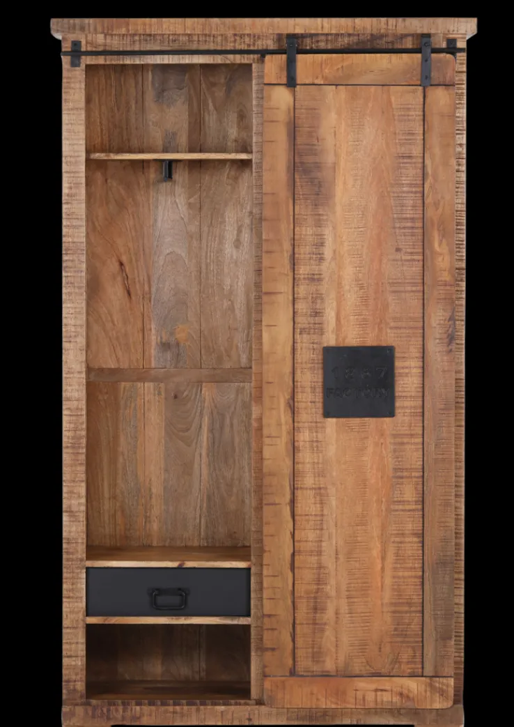 Der Garderobenschrank aus der Serie BARNEY vereint Funktionalität und industriellen Stil in einem ansprechenden Design.