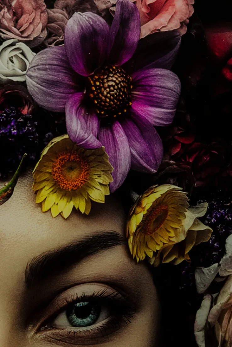 Das mehrfarbige KARE DESIGN Bild FLOWER hat eine Größe von 120 x 120 cm und begeistert mit einem düsteren und zugleich sehr farbenfrohen Design, das sofort alle Blicke auf sich zieht. Das Bild hat eine quadratische Form und zeigt das Porträt einer Frau. Sie trägt einen Hut aus bunten Blumen verschiedener Art. Während Ihre Haut sehr hell ist und schon fast bläulich schimmert, zeigt sich der Hintergrund in dunklem Schwarz, sodass ein gelungener Kontrast entsteht. Hängen Sie das Bild über der Sofaecke im Wohnzimmer oder über dem Bett im Schlafzimmer auf. Auch als Dekoration für den Eingangsbereich ist es hervorragend geeignet.
