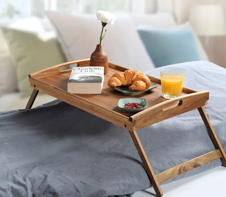 Das Kesper Serviertablett aus Akazienholz vereint Funktionalität und natürliche Eleganz. Mit einer Breite von 35 cm, einer Höhe von 24 cm und einer Länge von 55 cm bietet es ausreichend Platz für ein stilvolles Frühstück im Bett oder das Servieren von Snacks. Die warme braune Farbe des Holzes verleiht jedem Raum eine gemütliche Atmosphäre. Gefertigt aus robustem Akazienholz, überzeugt das Tablett durch seine Langlebigkeit und Stabilität. Das Tablett verfügt über klappbare Beine, die eine flexible Nutzung ermöglichen, sei es auf dem Tisch oder als eigenständige Einheit. Die Marke Kesper steht für Qualität und durchdachtes Design, was dieses Serviertablett zu einem praktischen und ästhetischen Begleiter im Alltag macht.