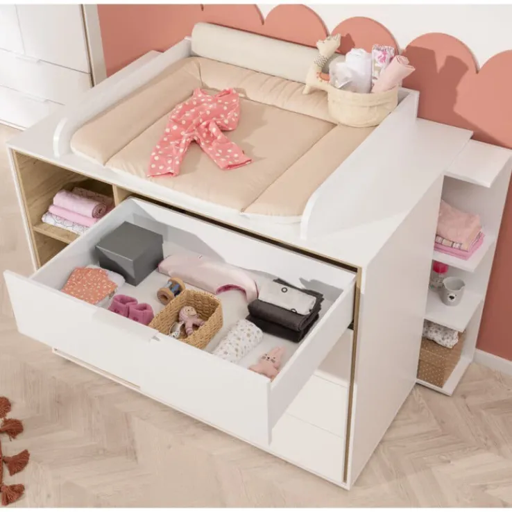 Hergestellt wird die Wickelkommode LIEVEN von der bekannten Möbelmarke PAIDI. Sie hat sich auf die Herstellung hochwertiger Möbel rund um das Kinderzimmer und die kindgerechte Versorgung von Babys spezialisiert. Dem Produkt merkt man die langjährige Erfahrung des Unternehmens am Kindermöbelmarkt an. Die Oberflächenbeschichtung ermöglicht eine leichte Reinigung. Die Wickelkommode wird ohne Aufsatz geliefert.