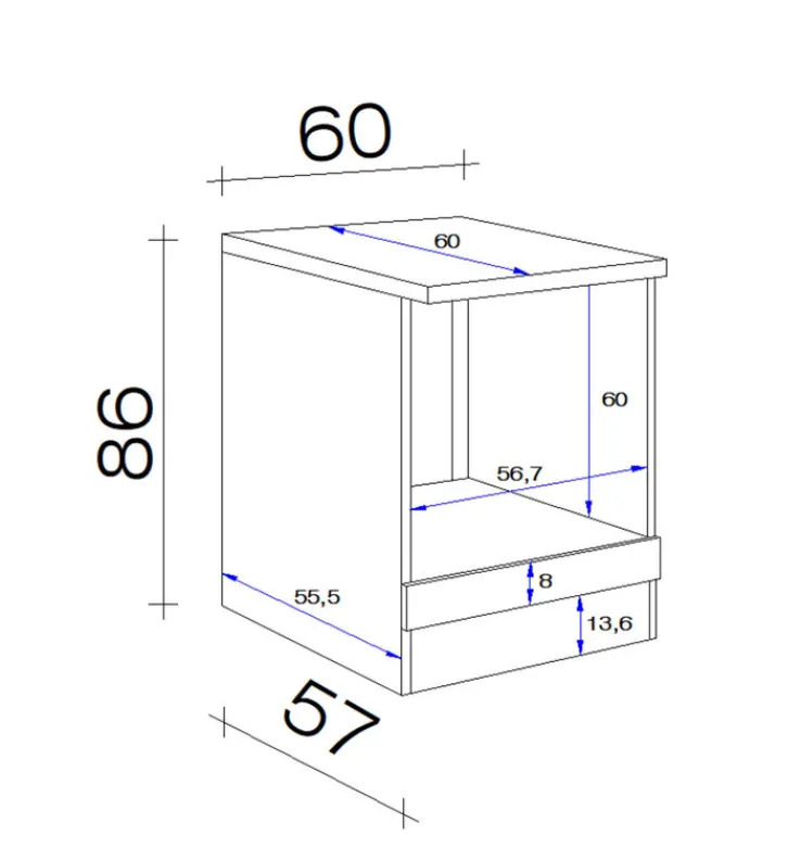 Der NEO HU60 ist die perfekte Ergänzung für Ihre Küche! Dieser hochwertige Schrank ist aus weißem Melamin gefertigt und wird mit einer Arbeitsplatte, einer festen Platte und einer Nische für den Einbauherd geliefert. Die Planungstiefe des Schranks beträgt 60 cm, so dass er sich leicht in jede Kücheneinrichtung einfügen lässt.