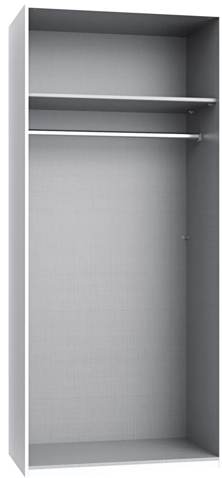 Der Kleiderschrank Korpus KIRA ist aus solider Holznachbildung gefertigt und besitzt eine gute Stabilität. Der Korpusschrank ist mit einem Einlegeboden und einer Kleiderstange ausgestattet, die ausreichend Platz für Jacken, Kleider und vieles mehr bieten. Neben dem Stauraum bietet der Kleiderschrank Korpus ein ansprechendes, modernes Design. Der Kleiderschrank Korpus ist für kleine Schlafzimmer ebenso geeignet, wie für Kinder- und Jugendzimmer. Für ein harmonisches Ambiente sollte der Schrank mit weiteren Möbeln der KIRA Serie kombiniert werden.