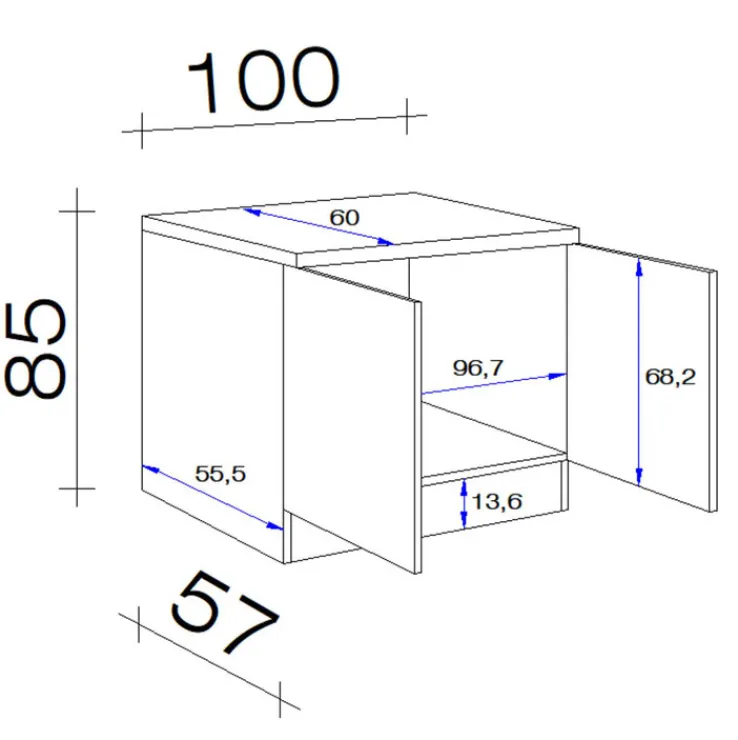 Breite: 100 cmHöhe: 85 cmTiefe/Ausladung: 57 cmLänge: 57 cm