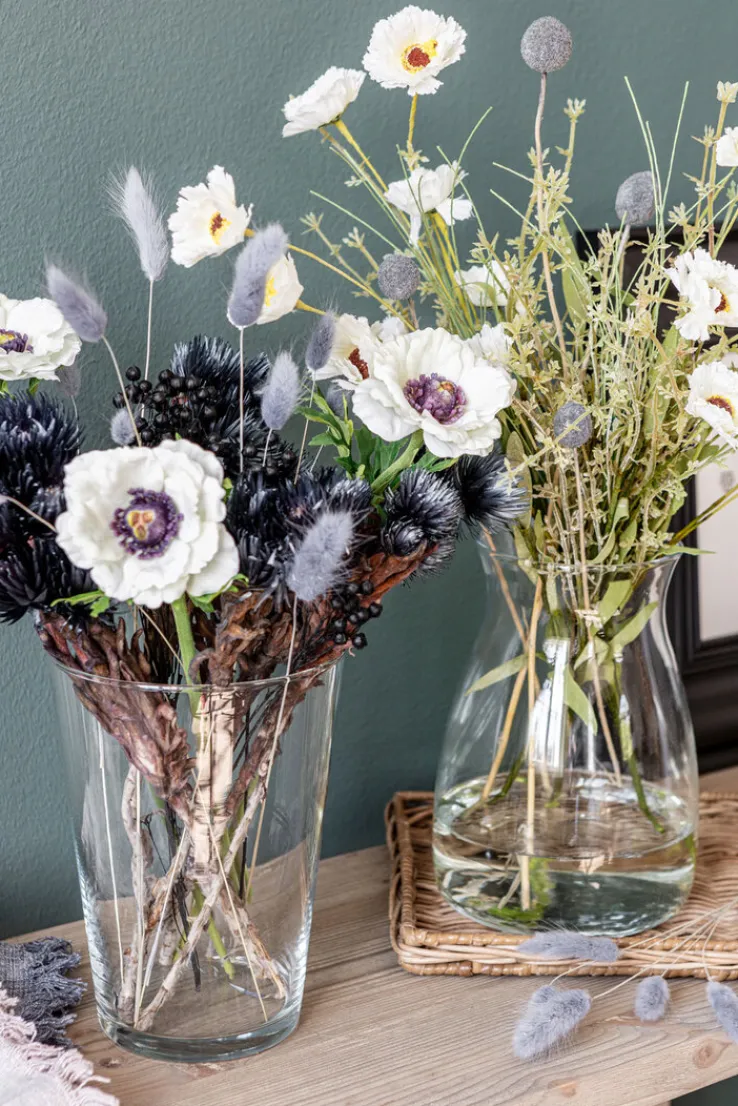 In der transparenten Vase DIANA lassen sich Sträucher und Schnittblumen geschmackvoll in Szene setzen. Sie findet auf Fensterbänken, Küchentischen oder Kommoden Platz. Neben seiner Funktion als Blumenvase eignet sich das Gefäß als dekoratives Element: Die Vase lässt sich mit saisonalem Zimmerschmuck wie Weihnachtskugeln oder Lichterketten kombinieren. Das Arrangement mit anderen Produkten aus der Serie wirkt besonders stilvoll.