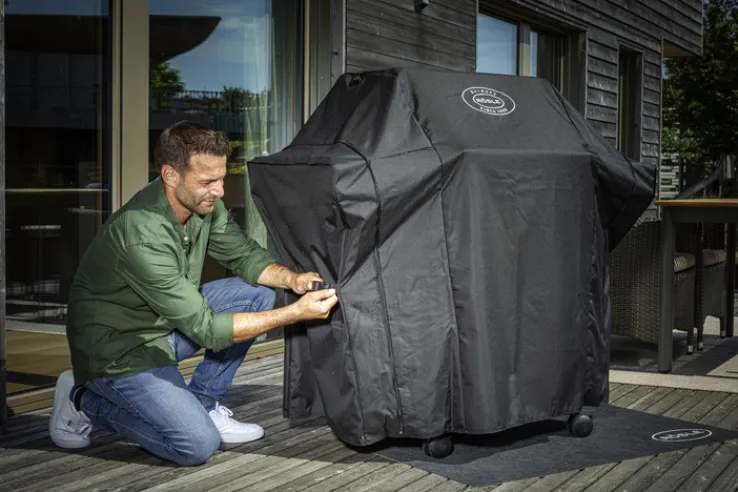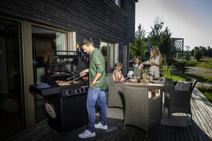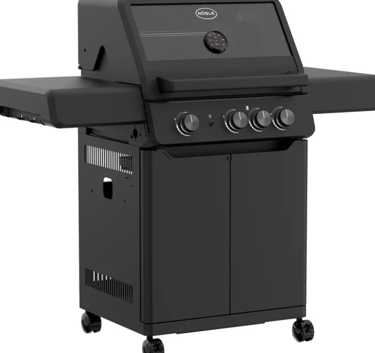Der schwarz-graufarbige BBQ Station Gasgrill ALL FLAME PEER ist 127 cm breit und 61 cm tief. Er ist aus Metall gefertigt und bietet als Extra für Steaks eine CRISPZONE mit zusätzlichem 3-kW-Brenner zum schnellen Aufheizen auf 450 °C. Mit seiner Grillfläche von 60 x 45 cm und einem Warmhalterost im Format 60 x 16 cm ist der BBQ Station Gasgrill ALL FLAME PEER von RÖSLE perfekt für jede Grillparty im Freien. Die 3 Hauptbrenner für einen Gasdruck von 50 Millibar bestehen aus Edelstahl und bringen je 3,5 kW. Dazu kommt ein solide ausgelegter Deckel mit großen Control Panels sowie integriertem Thermometer. Zudem ist der Gasgrill mit klappbaren Seitentischen ausgestattet.