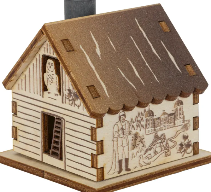 Das Design greift Motive aus dem Märchen Drei Haselnüsse für Aschenbrödel auf, darunter ein Schloss, Figuren und Szenen aus der Erzählung. Die Details sind präzise gelasert und teilweise farbig abgesetzt, was für einen abwechslungsreichen und hochwertigen Eindruck sorgt. Die kompakte Form eignet sich besonders als dekoratives Element für festliche Arrangements oder als Sammelobjekt mit Bezug zu klassischen Märchenmotiven.