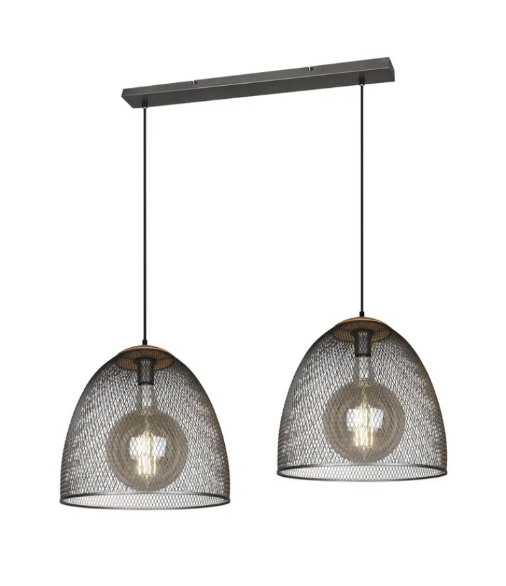 Die 2-flammige Retrofit Pendellampe IVAR von TRIO überzeugt mit ihrem stilsicheren Design und passt in modern eingerichtete Wohnbereiche. Auch für Räumlichkeiten im Vintage- oder Industry-Stil ist die Lampe ist sie geeignet. Sie beleuchtet den Esstisch im Wohn- oder Esszimmer und ist auch für den Thekenbereich in einer Küche ideal. Durch die schönen Lampenschirme in Gitteroptik fällt die Pendellampe sofort ins Auge. Gleichzeitig sorgt sie für ein angenehmes Licht mit Reflexionen.