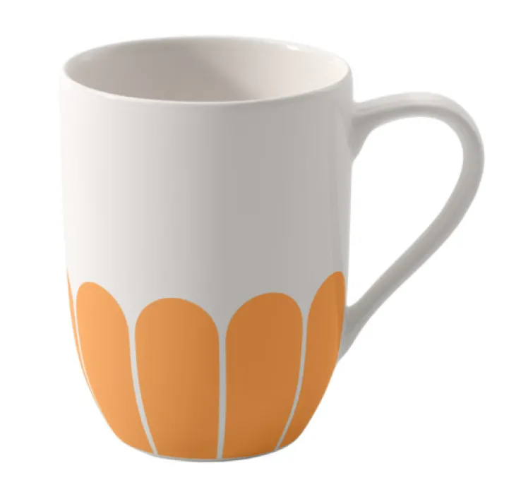 Das auffällige gelbe Muster auf weißem Hintergrund verleiht dem Becher eine frische und moderne Optik. Die harmonische Kombination der Farben Gelb und Weiß sorgt für ein ansprechendes Erscheinungsbild, das in jede Kücheneinrichtung passt. Mit einem Gewicht von 0,262 kg liegt der Becher angenehm in der Hand und ist leicht zu handhaben.