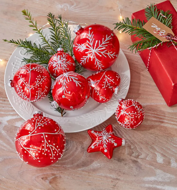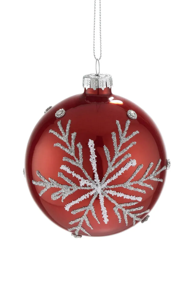 Dass ein NORDISCHER WINTER angebrochen ist, verrät die Weihnachtskugel I in Rot und Weiß sowie mit einem 8 cm starken Durchmesser vom beliebten Markenhersteller Weihnachtsglanz by casaNOVA. Die ausgesprochen wirkungsvolle Weihnachtskugel zeichnet sich durch ihre ebenmäßige Oberfläche aus, welche lediglich von einer einzelnen Schneeflocke veredelt wird. Das mit Glitter versehene Modell entspricht dem Geist des Winters sowie der Weihnachtszeit und lässt sich in jedem erdenklichen Raum zur Dekoration verwenden. Neben privaten Räumlichkeiten wie einem Flur, dem Wohnzimmer und der Küche kann die Weihnachtskugel auch in einer Arztpraxis dekoriert werden. Eine Vase auf dem Empfangstresen mit Reisig und Weihnachtskugel ist stimmungsvoll.