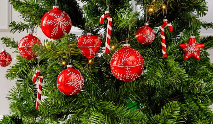 Farbe: RotSilberfarbigFarbton: Rot glänzend mit Glitter Schneeflocke weiß /silberfarbigHauptfarbe: Rot