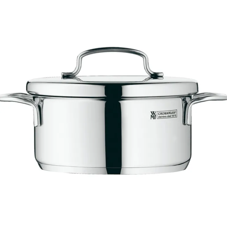Unentbehrliche Haushaltshelfer für Restportionen, Single-Haushalte etc. sind die Töpfe und Pfannen aus der WMF Minikochgeschirr-Serie. Das Kochgeschirr im Mini Format ist mit seinen Einzelteilen Platz sparend stapelbar und die Kollektion ist sehr breit ausgebaut. Vom Bratentopf bis zur Servierpfanne finden sie in dieser Serie alles rund um die kleinen praktischen Haushaltshelfer. Wie die normalen Kochgeschirr-Serien ist auch das Mini-Kochgeschirr aus hochwertigem und sehr langlebigem Cromargan® Edelstahl Rostfrei 18/10 und zudem noch mit dem TransTherm®-Allherdboden ausgestattet. Das Mini-Kochgeschirr ist glänzend poliert und auch meisterhaft bis ins kleinste Detail verarbeitet.