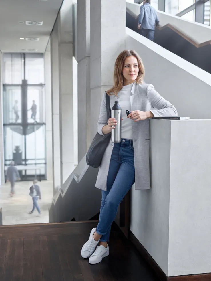 Die 30 cm hohe Trinkflasche WATERKANT ISO hat einen Durchmesser von 7,4 cm. Die rostfreie Flasche ist zu 100 % auslaufsicher. Sie ist 100 % BPA frei und für austauschbare Trinkaufsätze erhältlich. Die doppelwandige Trinkflasche hält bis zu 6 Stunden warm und bis zu 12 Stunden kalt. Damit ist die WMF Trinkflasche WATERKANT ISO ein perfekter Begleiter für den Alltag. Unterwegs haben Sie zu jederzeit einen erfrischenden oder belebenden Schluck eines Erfrischungsgetränks, Kaffees oder Tees parat. Mit ihrem modernen Design ist die Trinkflasche außerdem sehr hübsch anzusehen. Sie ist für die Reinigung in der Spülmaschine geeignet.