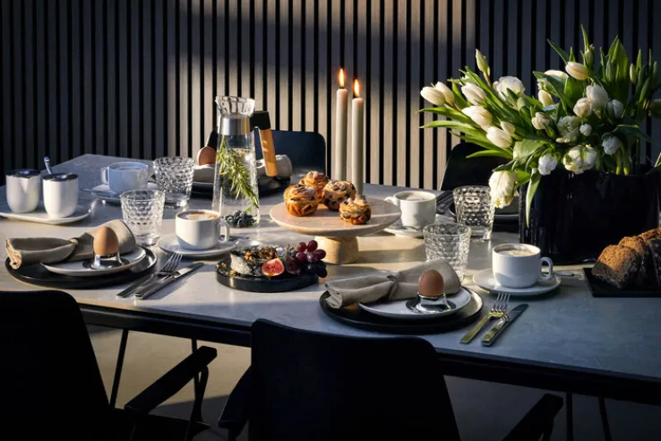 Mit der WMF Wasserkaraffe KINEO aus Borosilikatglas und einem Fassungsvermögen von 1000 ml kommt ein formschöner Blickfang auf den Esstisch, der mit dynamischem Design und Funktionalität gleichermaßen überzeugt.