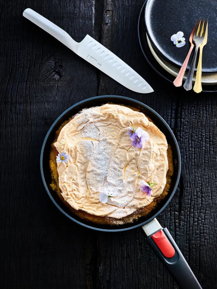 Die WOLL Gusspfanne DIAMOND LITE besteht aus handgegossenem Aluminium und hat ein Fassungsvermögen von 4,75 Liter. Durch die ultraharte Diamantversiegelung ermöglicht die Pfanne ein fast fettfreies Kochen. Darüber hinaus ist die Versiegelung schnittfest und sehr pflegeleicht. Die Reinigung in der Spülmaschine ist somit kein Problem. Punkten kann die Gusspfanne zudem mit ihrer Energieeffizienz, denn sie heißt sich sehr rasch auf. Das Highlight ist jedoch der abnehmbare Griff. Ohne Griff ist die Pfanne als Ofenform verwendbar und bis zu 250 °C backofenfest.