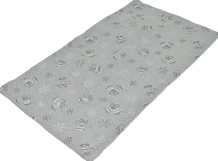 Der Tischläufer aus der Serie „Winterzeit“ von Yve Decoration ist ein elegantes Accessoire für Ihr Zuhause. Mit einer Breite von 40 cm und einer Länge von 140 cm passt er perfekt auf viele Tische und verleiht Ihrem Wohnraum eine festliche Note. Der Tischläufer ist in einem klassischen Grau gehalten und zeigt ein mehrfarbiges, gemustertes Design mit winterlichen Motiven wie Schneeflocken und Glocken, die auf dem Bild deutlich zu erkennen sind.
